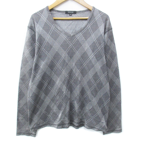 【中古】ミッシェルクランオム M.K HOMME カットソー 長袖 Vネック ダイヤ柄 総柄 48 L グレー 白 ホワイト メンズ