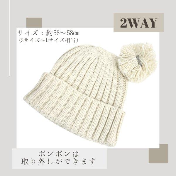 2WAY ポンポン ボンボン 取り外し 洗濯機 洗濯機洗い 洗濯機可 洗濯機OK 洗濯機対応 洗濯機で洗える 洗える帽子 洗えるニット 家庭洗濯 暖かい あたたか ゆったりめ 大きめ 小顔効果 アクリル 毛糸 ニット KNIT