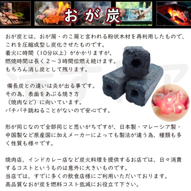 おが炭 四角形 10kg(1kgあたり296円) 業務用 ちくわ炭 高品質 オガ炭