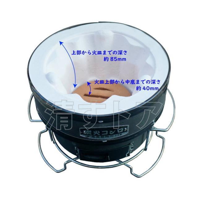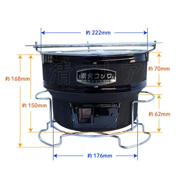 三河焼 しちりん じゅうじゅう 黒 台、アミ止め付 珪藻土 三河粘土使用 七輪 コンロ 国産 業務用 KA0023