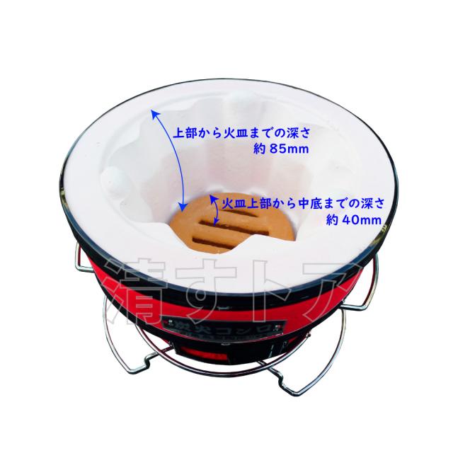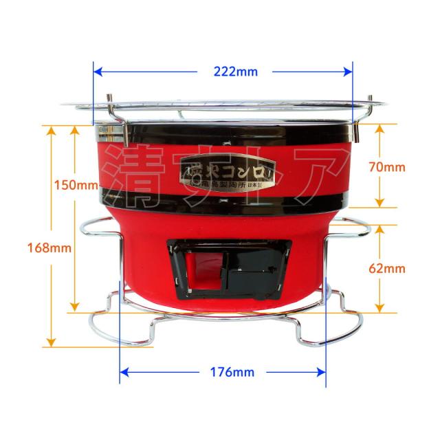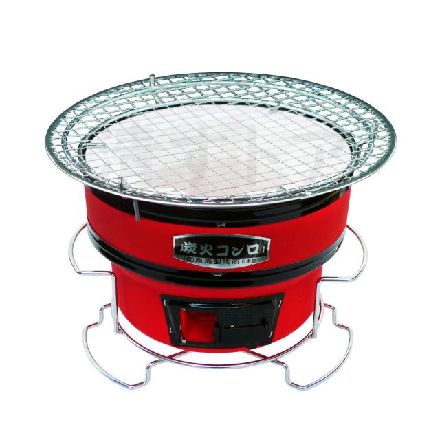 三河焼 しちりん じゅうじゅう 赤 台、アミ止め付 珪藻土 三河粘土使用 七輪 コンロ 国産 業務用 KA0023