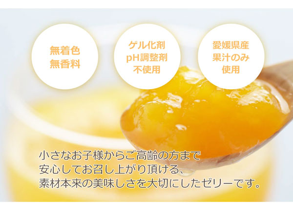 愛媛みかん本来の甘みを再現した寒天ゼリーです。小さなお子様からご高齢の方まで安心してご賞味いただけます♪