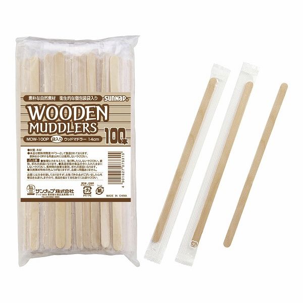 サンナップ(Sunnap) 個包装ウッドマドラー 140mm 入数:1セット(100本入) MDW-100P(GMD0601) ウッドマドラー 木製マドラー マドラースプーン マドラー 使い捨て テイクアウト 個包装