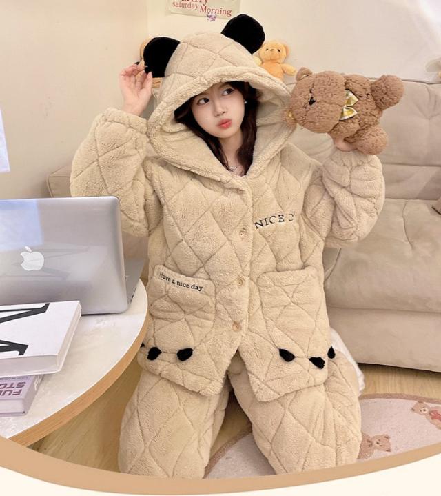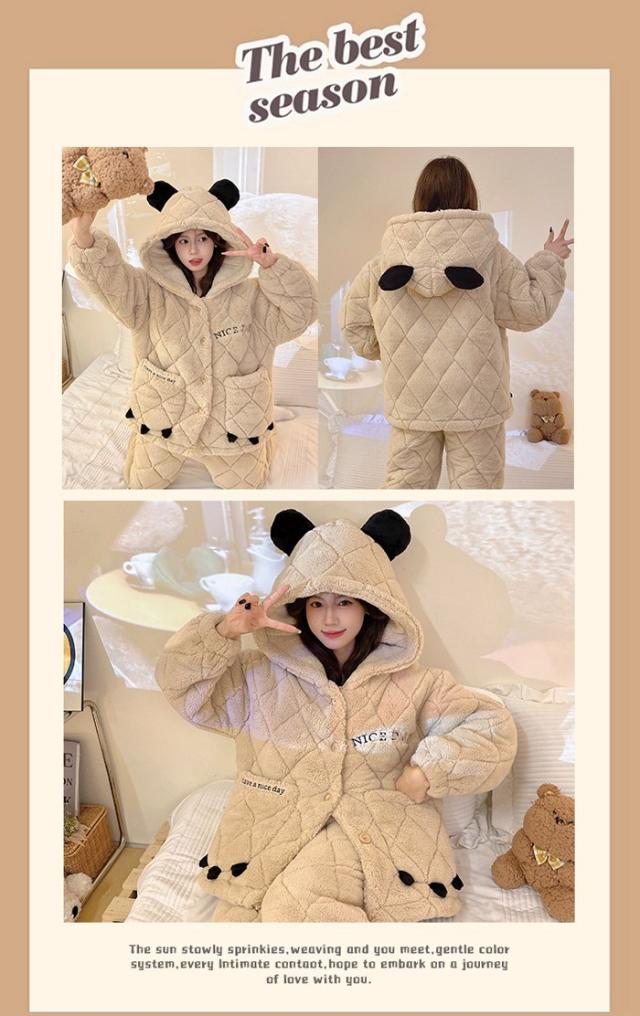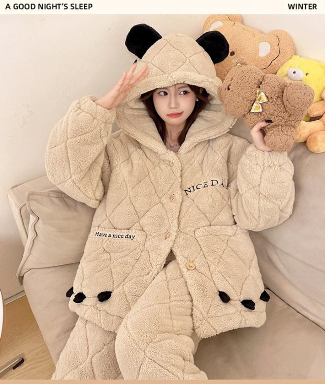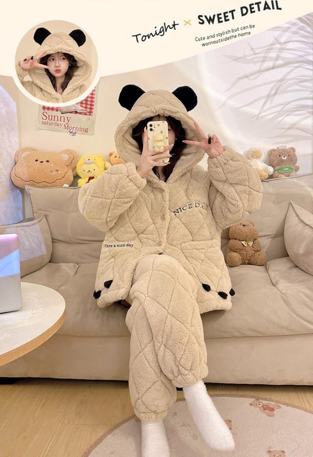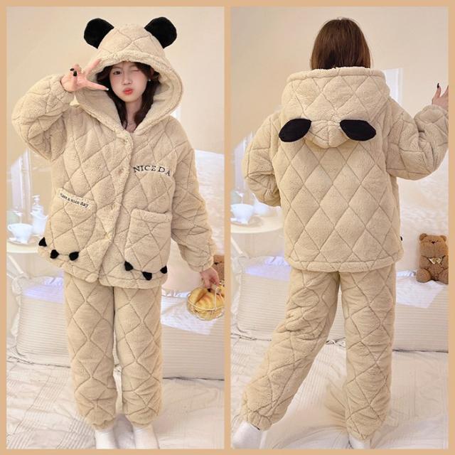 パジャマ レディース クマ フード付きルームウェア ルームウェア もこもこ 動物 レディース メンズ 可愛い 冬 長袖 大きいサイズ 秋 上下セット パンツ 上下 ズボン くま パジャマ 部屋着 ふわふわ あったか