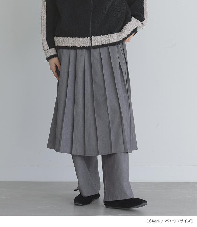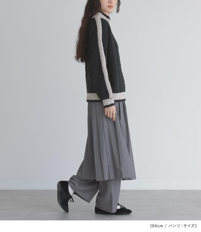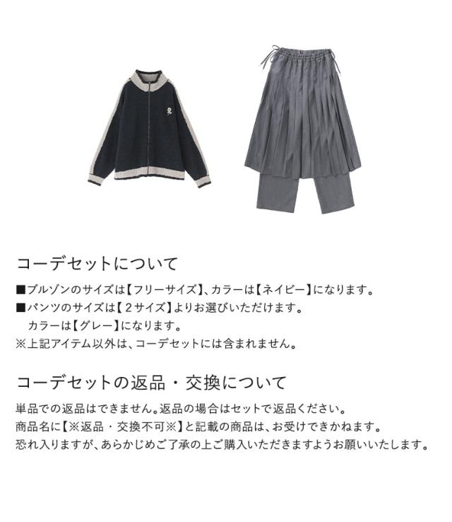 【送料無料】『ラインニットブルゾン×プリーツスカート×ストレートパンツセットコーデ2点SET』【メール便不可】【70】[2点コーデセット 2024 レディース トップス ニット カーディガン パンツ スカートボトムス]