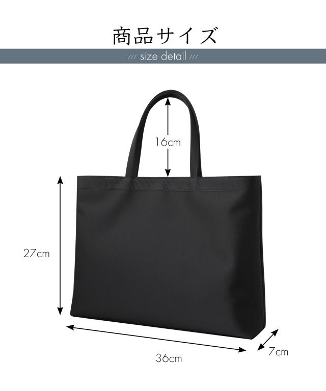 大きめサイズのシンプルフォーマルトートバッグ シンプルながら上品さも忘れない。 お葬式に限らず、法事・法要・お墓参り・入学式・卒業式など様々なフォーマルシーンでご使用いただけます。 ふくさ・念珠・ハンカチ・スマートフォン・財布・リップ・ハンドクリームなど、必要なものを入れても余裕のあるサイズ感。 A4サイズもすっぽり入るので、書類などの持ち運びに便利。 バッグの底には自立する底鋲付き。 内側両サイドにポケット付き(3つ)。 スマホなどが収納できます。 軽量仕様なので、荷物の多い場面でも使いやすい。 持ち手の高さ:16cm (外寸)幅:36cm / 奥行:7cm / 高さ:27cm 生産国:日本 |