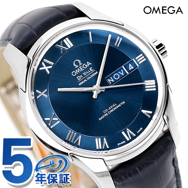 5年保証キャンペーン オメガ デ・ヴィル アワービジョン 41mm スイス製 メンズ 腕時計 433.13.41.22.03.001 OMEGA De Ville Hour Vision アナログ ブルー ネイビー ◆オメガは1848年、ルイ・ブランがスイスに時計工房を創設したことから始まります。1894年に発表した懐中時計のムーブメント、「Ω(オメガ/達成と極致の意)」という言葉を正式な社名として採用しました。 スピードマスターは、アポロ11号で月面に降り立った宇宙飛行士の腕に装備されていたことから、“月面で着用された最初の時計”として知られています。 外観に複雑な職人技、内部には革新的な機械装置を備えた「アワービジョン」は、あらゆる面で調和の取れた時計です。ブルーのユニークな立体ダイアルが洗練された印象を与えます。細身な針とローマ数字のインデックスには18Kホワイトゴールドが使われています。 機械式腕時計