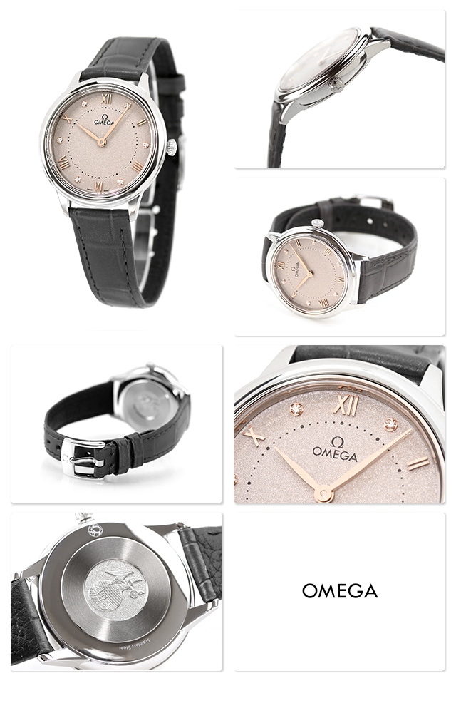 5年保証キャンペーン オメガ デ・ヴィル プレステージ 30mm ダイヤモンド スイス製 レディース 腕時計 434.13.30.60.56.001 OMEGA De Ville Prestige アナログ グレー ダークグレー ◆オメガは1848年、ルイ・ブランがスイスに時計工房を創設したことから始まります。1894年に発表した懐中時計のムーブメント、「Ω(オメガ/達成と極致の意)」という言葉を正式な社名として採用しました。 スピードマスターは、アポロ11号で月面に降り立った宇宙飛行士の腕に装備されていたことから、“月面で着用された最初の時計”として知られています。 「オメガ デ・ヴィル プレステージ」はクラシカルなデザインと洗練されたエレガンスを表現し続けるタイムピースです。クリスタル仕上げのロジウムグレーダイアルを備えています。6個のダイヤモンドとローマ数字のインデックスが交互に配されています。