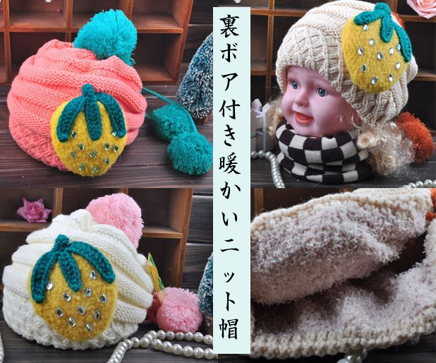 ニット帽 キッズ 子供帽子 女の子1000円ポッキリ 子供 防寒 ジュニア 帽子 冬 こども ニット帽子 ボンボン付き かわいい帽子 子ども ボア イチゴ いちご キラキラ 冬小物