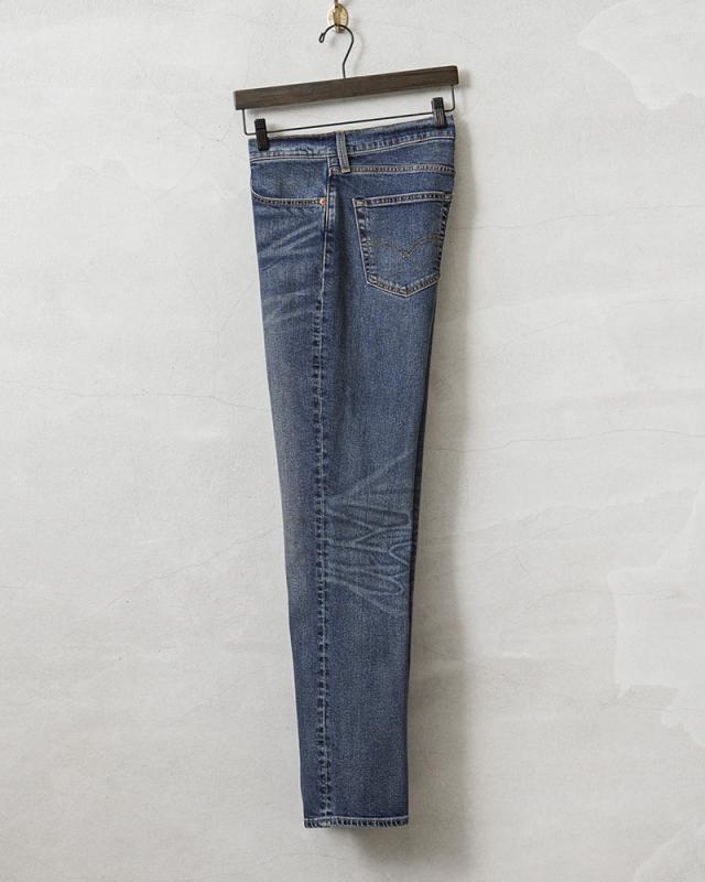 長い間愛されるリーバイスのベーシックシルエットの一つ「511」ストレートとスキニーの中間に位置するスタンダードなスリムフィットのストレートジーンズです。着脱しやすいフロントジッパーフライで、素材は程良い伸縮性を持ったストレッチ生地を採用。ヴィンテージシリーズから取られたアーキュエットステッチの形、打ち抜きリベット等、細部へのこだわりが感じられる仕上がりになっています。シルエットは股上がやや浅めで、腰回りに少しだけ余裕を持たせ、裾幅はより細くアレンジを加えたスリムフィット。タイト過ぎず動きやすい造りになっています。股下から裾にかけてすっきりとした縦のラインが強調され、ロールアップしても大きくシルエットが崩れないため、ブーツからローテクスニーカーまで相性抜群。ビンテージ加工が加えられ、長年履きこんだかのような自然な風合いが魅力のカラーです。