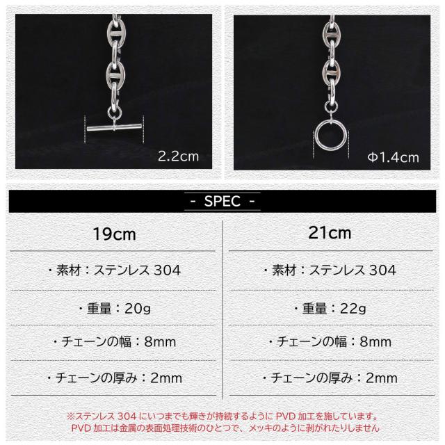 ブレスレットメンズ メンズブレスレット ブレスレット メンズ ステンレス アンカー チェーン シンプル 19cm 21cm シルバー 銀 金属アレルギー 対応 graner