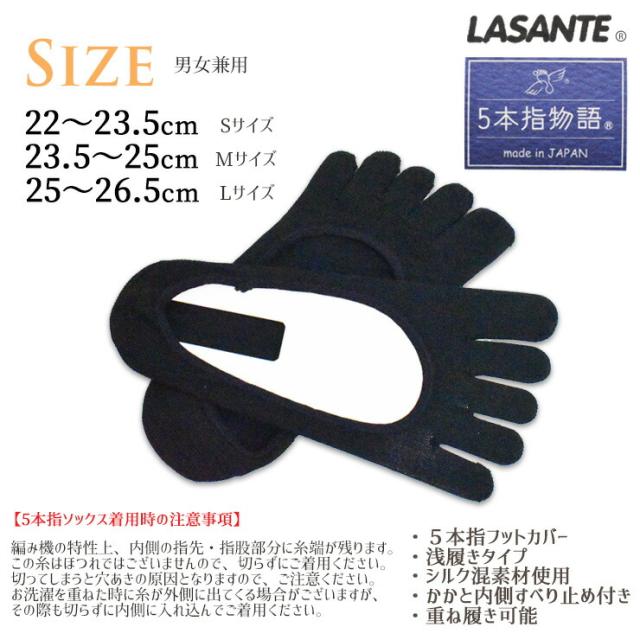 フットカバー 5本指 ラサンテ 5本指物語 シルク混 20181 単品 男女兼用 滑り止め付き 絹 アンクルカバー 浅履き 見えない パンプスカバー レディース メンズ 婦人 紳士 アンクルソックス スニーカーソックス シルク 靴下 22cm 23cm 24cm 25cm 26cm(05504)