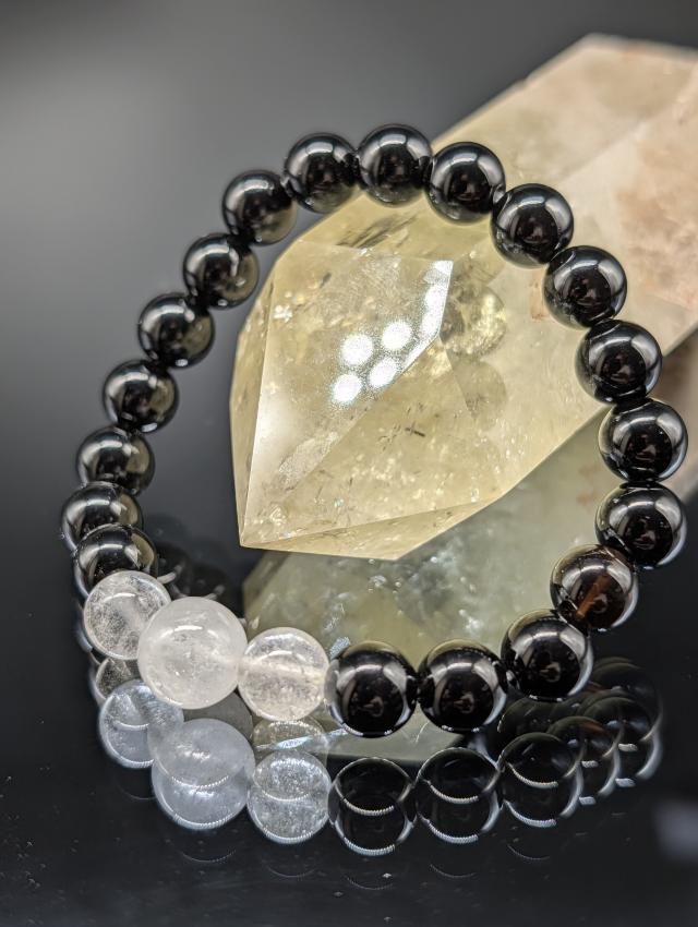 ヒマラヤ水晶とモリオンのMIXブレスレットです。水晶はネパール産。モリオンはチベット産になります。