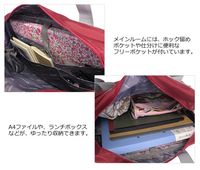 A4サイズも収納可能で、内外につけた多数の多機能ポケットで使いやすさ&収納力満点の仕上がりです。 裏地も、WPのオリジナル柄でキュート。