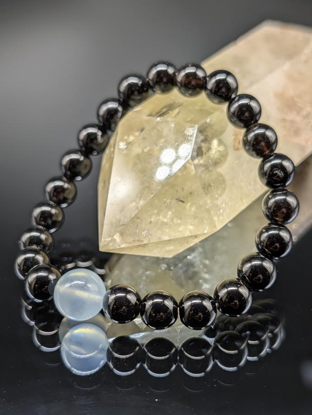 パワーストーン モリオン アクアマリン 8mm 親玉9〜10mm 最高品質 鑑別済み ブレスレット 黒水晶 縁切り 厄除け お守り 天然石 メンズ レディース