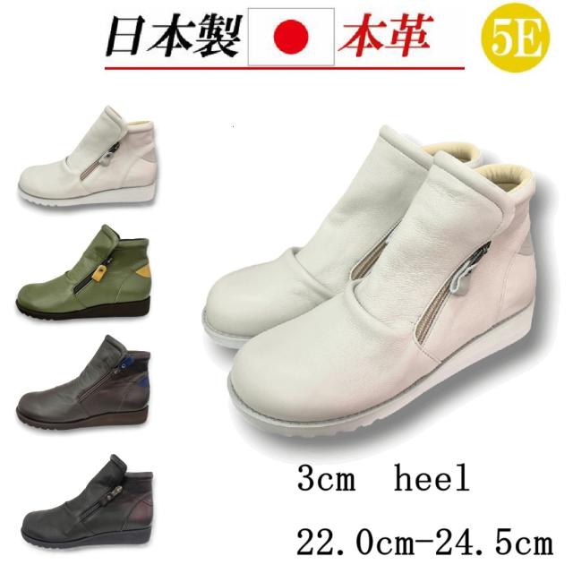日本製 本革 カジュアルシューズ コンフォートシューズ レエディ スニーカー 幅広 5e 外反母趾 ハイカット ジッパー 履きやすい 歩きやすい 脱ぎやすい 痛くない カジュアル おしゃれ