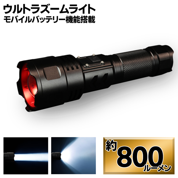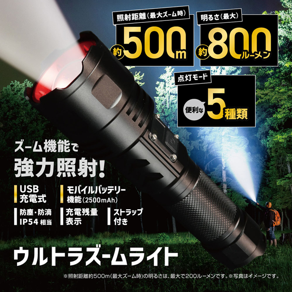 懐中電灯 強力 LED ハンディライト 防滴 SOS 点滅 小型 充電式 ズーム 照明 釣り 防災 登山 モバイルバッテリー スマホ充電【 LEDライト モバイルバッテリー スマホ充電 USB充電式 照明 釣り 防災 登山 】 /60N◇ ウルトラズーム
