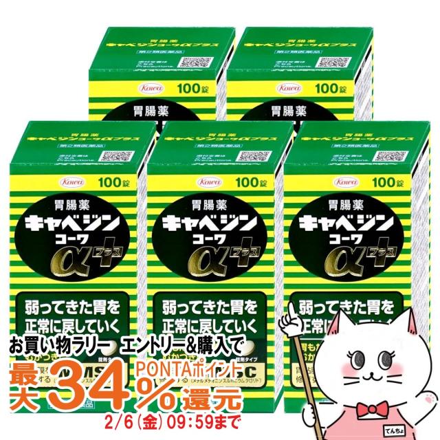 【お買い物ラリー 最大34%還元】【第2類医薬品】[セット]キャベジンコーワαプラス 100錠×5個[興和][胃腸薬][送料無料] (6058821-set3)