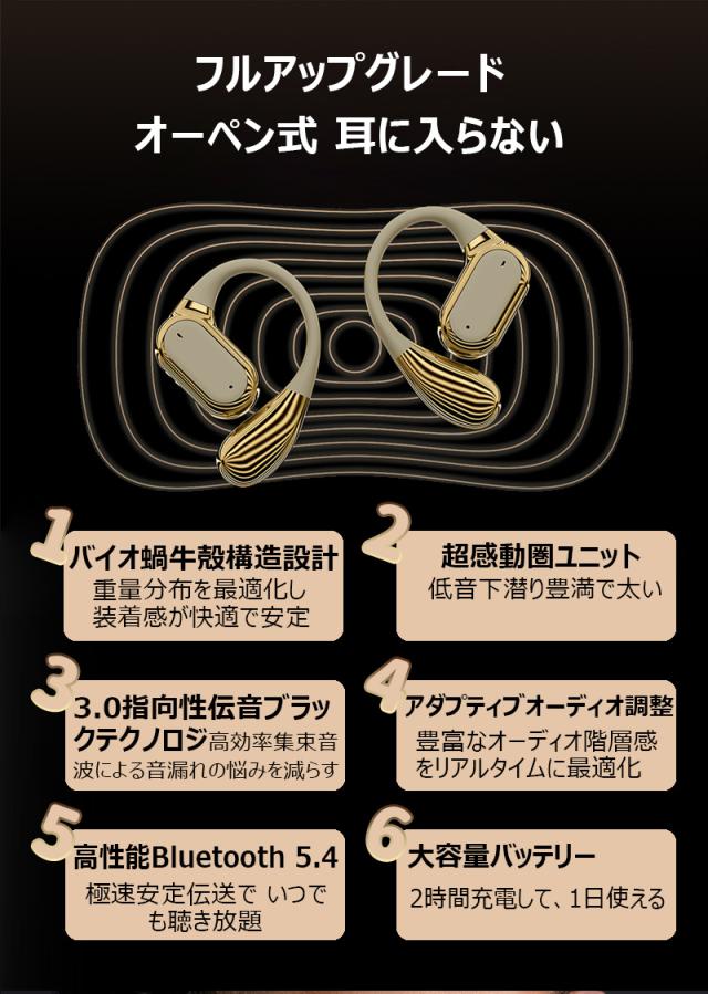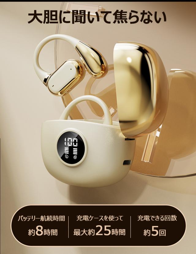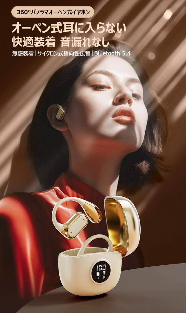 ワイヤレスイヤホン Bluetooth 5.4 360°パノラマオーペン式イヤホン 高音質 低遅延 航続時間約8小? ENC環境ノイズ低減 LED残量表示 USB充電 無感装着 快適装着 人間工学デザイン 軽量 自動ペアリング 誕生日 記念日 プレゼント