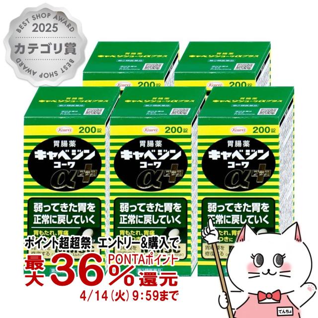 【超超祭 最大36%還元】【第2類医薬品】[セット]キャベジンコーワαプラス 200錠×5個[興和][胃腸薬][送料無料] (6058822-set3)