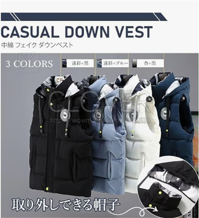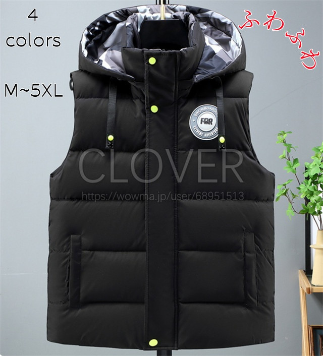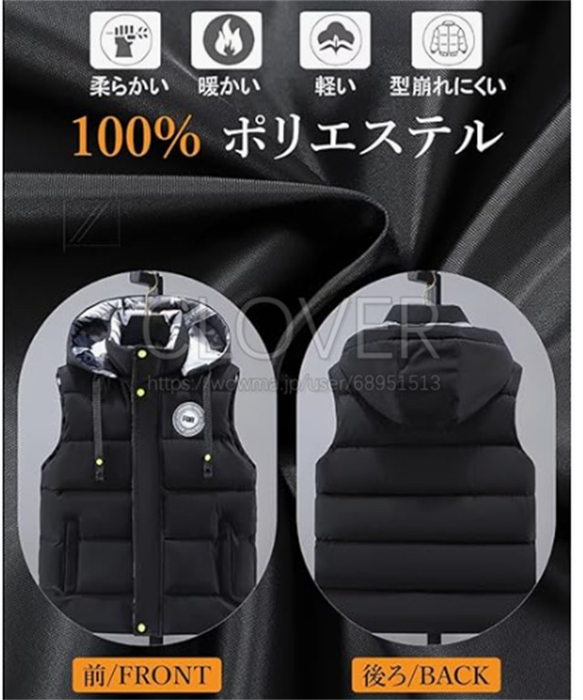 フード付き ダウンベスト メンズ 帽子取り外し 大きいサイズ M-4XL 中綿 アウトウェア 冬服 アウター 防寒 厚手 おしゃれ 暖かい 秋冬