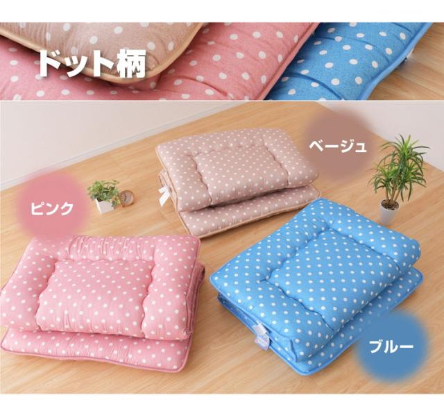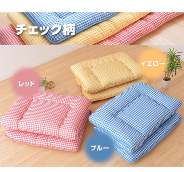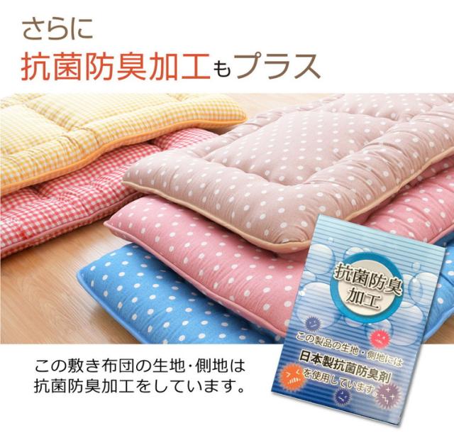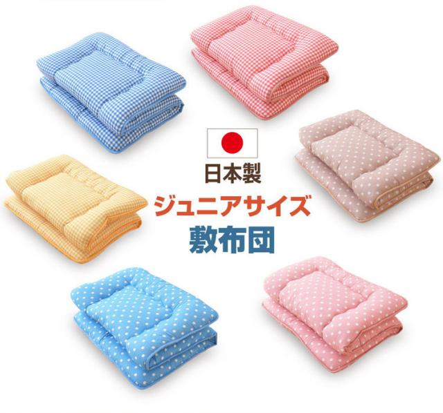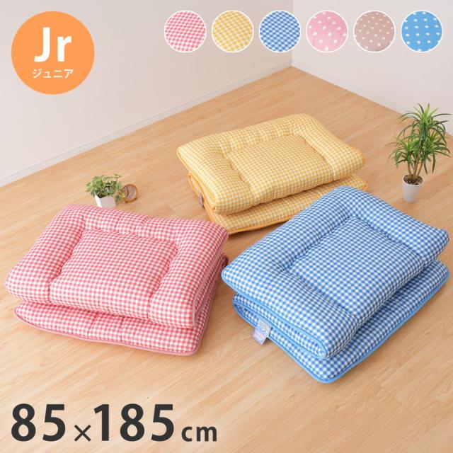日本製 色柄 敷布団 ジュニア 約85×185cm 抗菌防臭加工 固くわた入り 三層構造 選べる6種 ドット ちぇく 軽量 コンパクト 国産 持ち運び簡単 ほこりの出にくい 来客用 一人暮らし ワンルーム