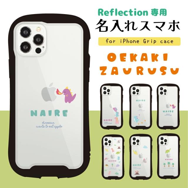 名入れ 耐衝撃グリップケース Reflection クリア 恐竜デザイン iPhoneケース スマホケース グッズ iPhone15 iPhone15Plus iPhone15Pro iPhone15ProMAX iPhone14 iPhone13 iPhone12 iPhone11 iPhoneX iPhone7 iPhone8 iPhoneSE