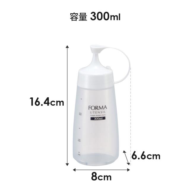 詰替容器 フォルマ 調味料ボトル ホワイト(細口) 中 300ml A2142 | ドレッシング 調味料入れ オイルボトル ソース 醤油差し 油 ケチャップ マヨネーズ マスタード スクイーズ 液ダレしにくい シャンプー ボディーソープ メモリ