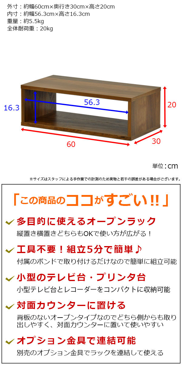 外寸:幅60cm 奥行き30cm 高さ20cm(60×30×20)