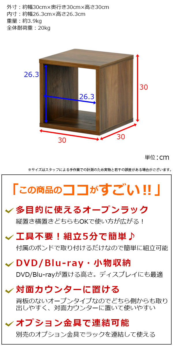 外寸:幅30cm 奥行き30cm 高さ30cm(30×30×30)