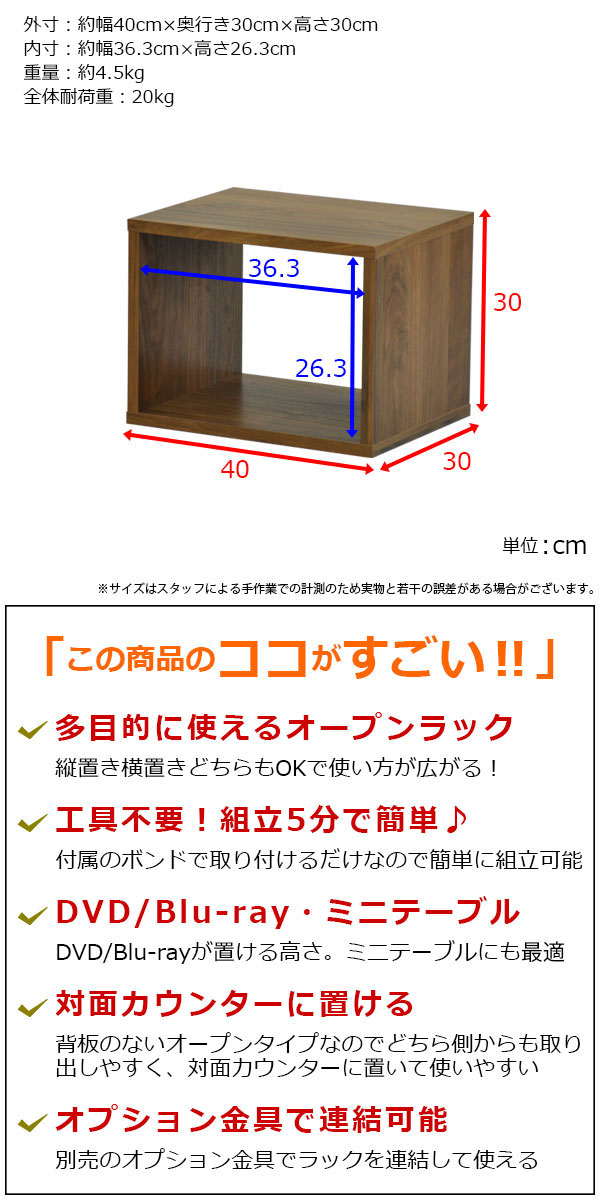 外寸:幅40cm 奥行き30cm 高さ30cm(40×30×30)
