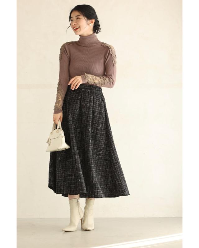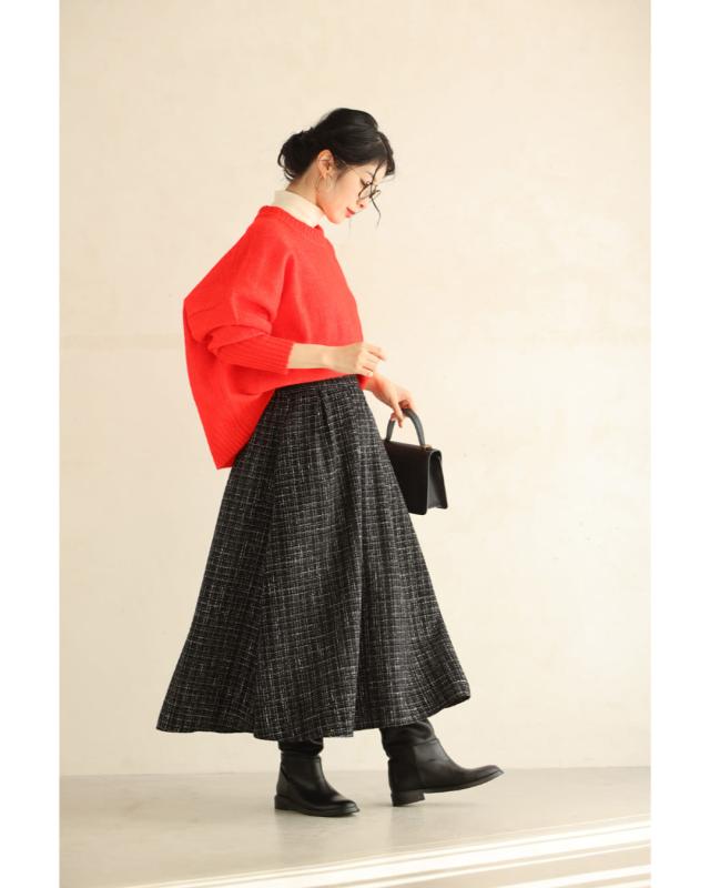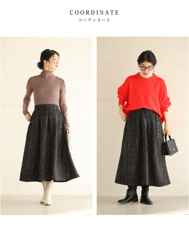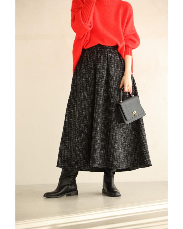 wkj00127 新作 新着 再入荷 CAWAII FRENCHPAVE フレンチパヴェ エレガント ベーシック カジュアル 可愛い かわいい カワイイ おしゃれ オシャレ お洒落 個性 個性的 定番 ベーシック 大人かわいい 大人可愛い 上品 女性らしい デザイン スタンダード ナチュラル きれいめ キレイめ シンプル フェミニン レディース レディースファッション 大人 ママ ミセス 30代 40代 50代 60代 上品な ツイードタック ミディアム スカート 後ろゴム ファスナー付 ワンサイズ Sサイズ Mサイズ Lサイズ フリーサイズ フリー 小さめ 小さめサイズ小さい 小さいサイズ 低身長 痩せ ほっそり 小柄 細身 標準サイズ 大きめシルエット 大きい 大きめ ビッグシルエット ぽっちゃり F サイズ自由 秋 冬 秋服 秋物 冬服 冬物 ブラック 黒 黒色 普段着 日常使い おでかけ