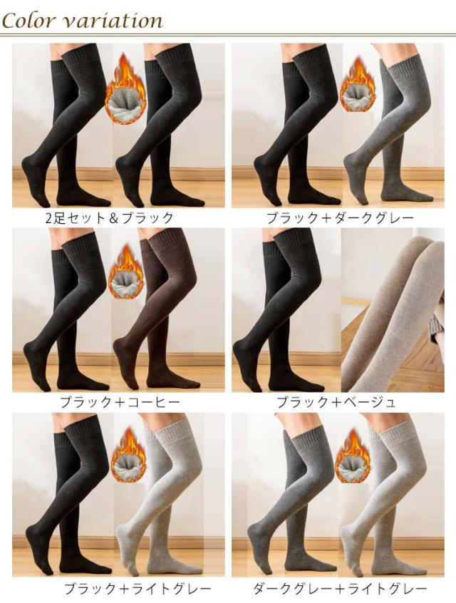 | 【あったか裏起毛・極厚】【靴下2足組】 裏地毛付きで寒い季節に足元をしっかりと保温、温めてくれます。 肌にやさしく、ボリューム感のある風合いと肌触り・保湿・吸湿性に優れている。 伸縮性のよい履き口、ずりおちにくい。 踵部分は強化することにより通常より長くお使いいただける。 膝までカバーしてくれるから、美脚効果なだけではなく防寒にも抜群! 合わせやすい5色展開!ルームソックスとしても、デイリーの通学、通勤も大活躍する。 | |