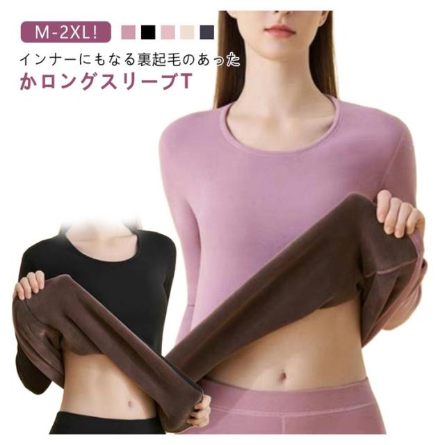 レディース ストレッチ スポーツ 裏ボア 起毛 インナー 厚手 秋冬 長袖 対策 あったかインナー 裏ボア 冬 冷え クルーネック カットソー あったかインナー あたたかい あったか 防寒 保温 丸首 ルームウェア 部屋着 女性 婦人 下着 肌着 重ね着 M L XL 2XL