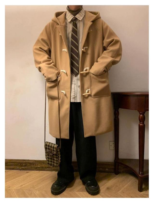 メンズ 裏起毛 コート ダッフルコート ビジネス 暖かい 厚手 シンプル スクールコート 通勤 ロングコート 防寒コート ゆったり 無地 裏ボア ダッフルコート フード付き 男子 学生 通学 冬アウター あったか 保温 カジュアル 秋服 冬物 冬服
