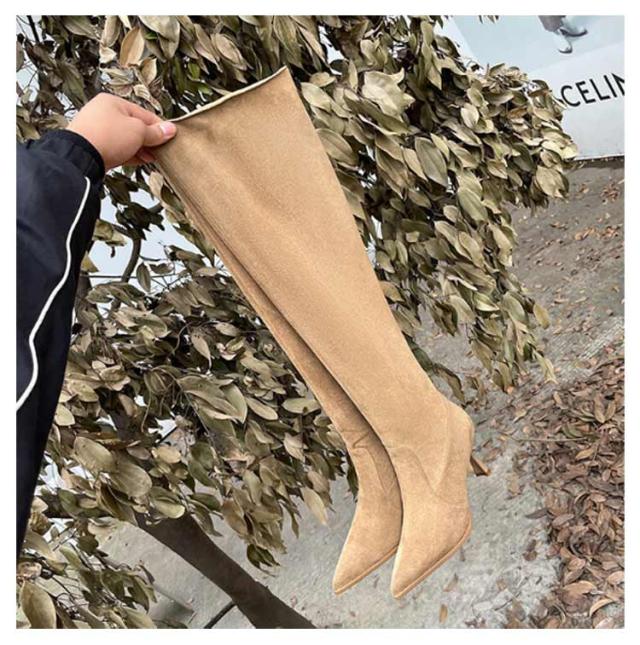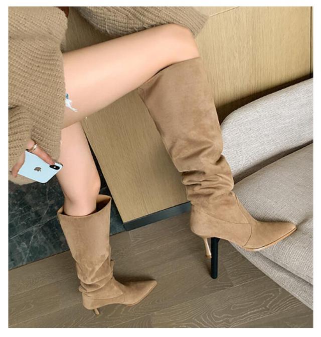 スエード ロングブーツ ブーツ レディース ハイヒール ニーハイブーツ ヒール 送料無料 ピンヒール 靴 美脚 脚長 きれいめ シンプル
