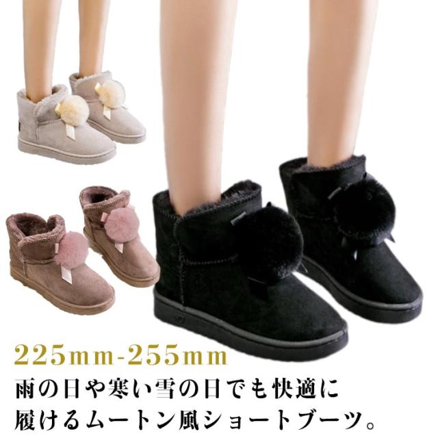 可愛い ショートブーツ 冬用 スノーブーツ フラットブーツ レディース ムートン風 送料無料 防寒 ブーツ 裏ボア 保温 スノーシューズ スリッポン式 フェイクムートン 履きやすい 防寒靴 ファー付き 可愛い 女性用