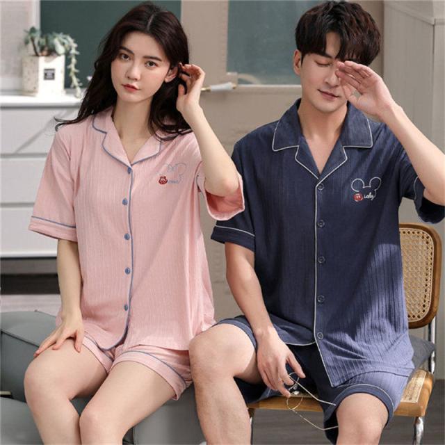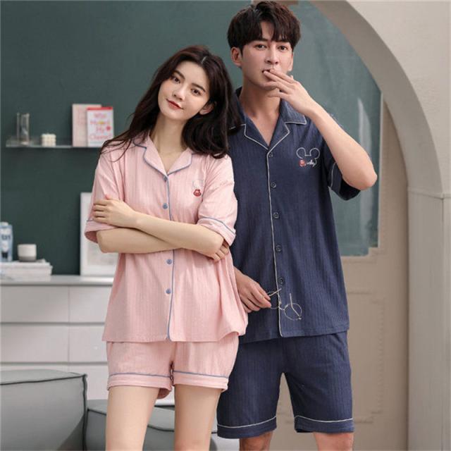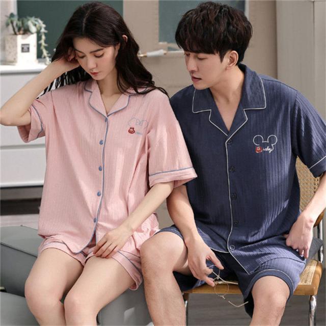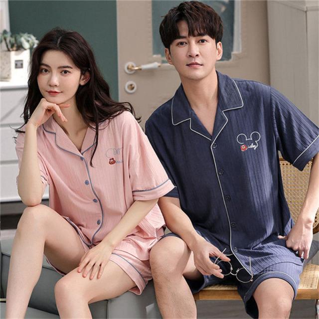 Mickey ペアパジャマ カップル ペア ルームウェア 夏 ペアルック パジャマ セットアップ 綿 寝巻き 部屋着 お揃い 寝間着 ギフト 結婚記念日