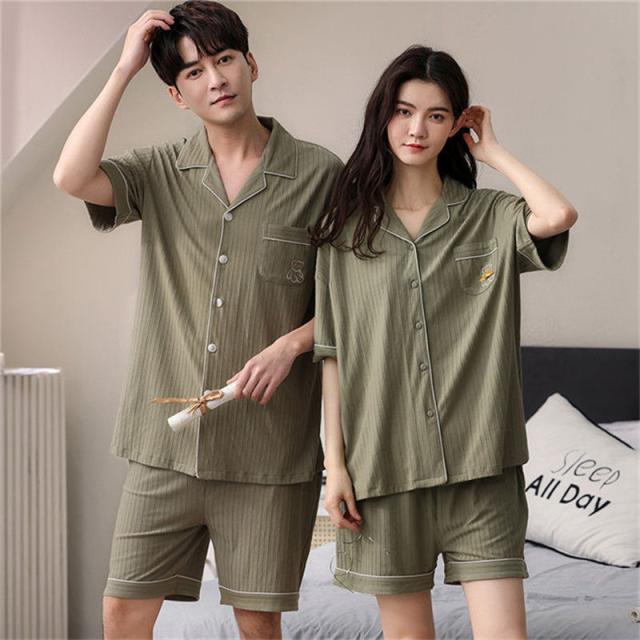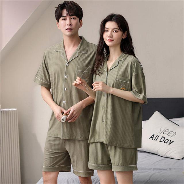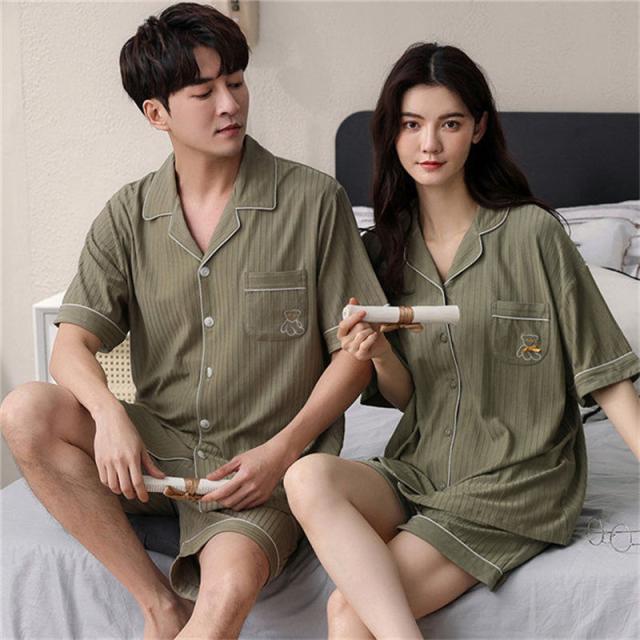 ペアパジャマ カップル ペア ルームウェア 夏 韓国風 クマ ペアルック パジャマ セットアップ 綿 寝巻き 部屋着 お揃い 寝間着 ギフト 結婚記念日