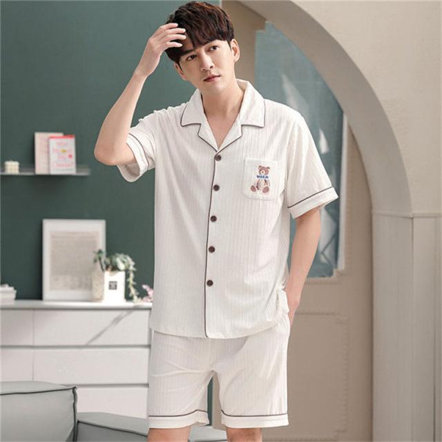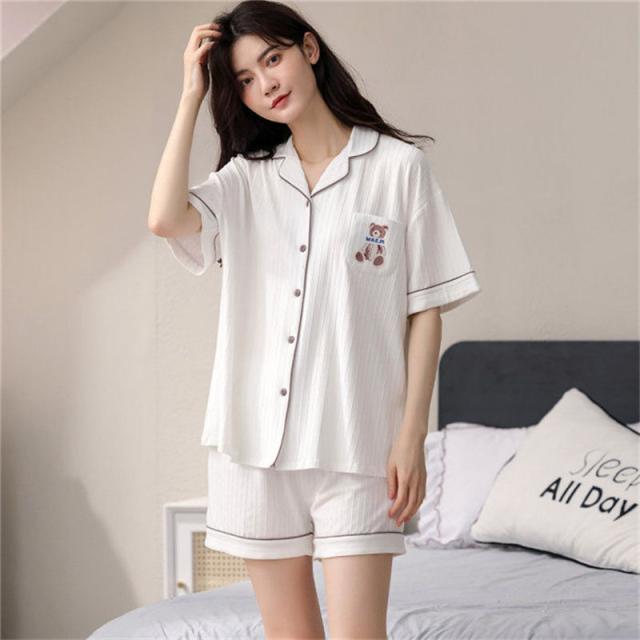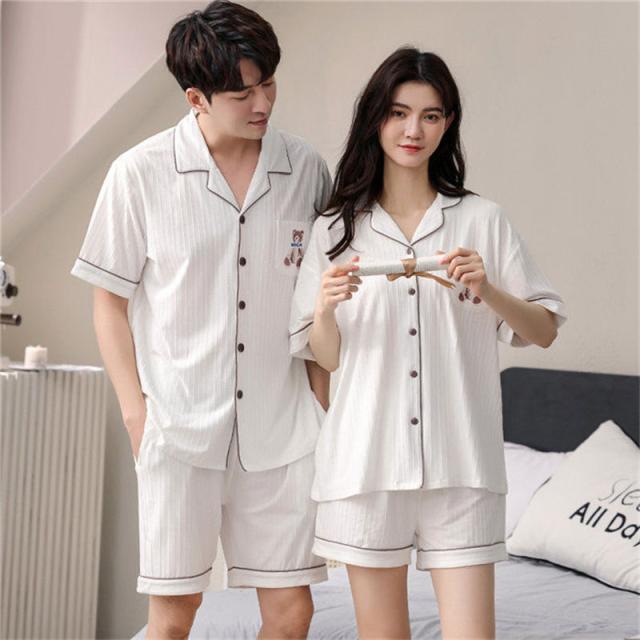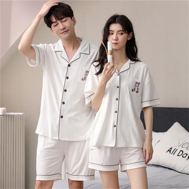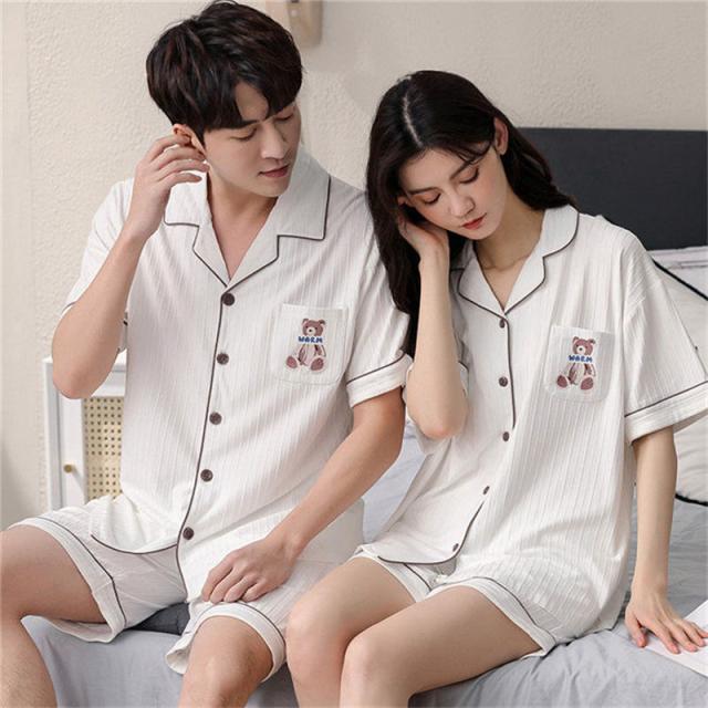 ペアパジャマ カップル ペア ルームウェア 夏 韓国風 クマ ペアルック パジャマ セットアップ 綿 寝巻き 部屋着 お揃い 寝間着 ギフト 結婚記念日