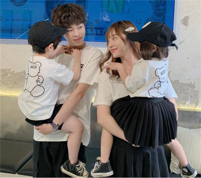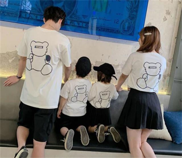 親子ペア tシャツ ペアルック リンクコーデ tシャツ 半袖 Tシャツ 家族お揃い Tシャツ クマ ママと娘 パパ お出かけ 撮影 姉妹 姉弟 兄妹 親子お揃い お祝い