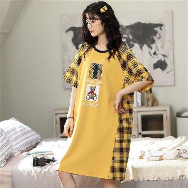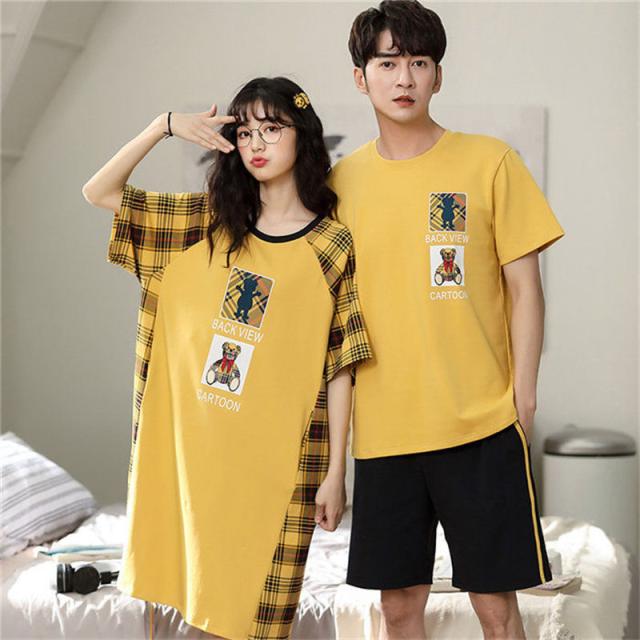 ペアパジャマ カップル ペア ルームウェア チェック柄 熊 ペアルック パジャマ レディース ワンピース メンズ 綿 寝巻き 部屋着 お揃い 寝間着 ギフト 結婚記念日 お祝い