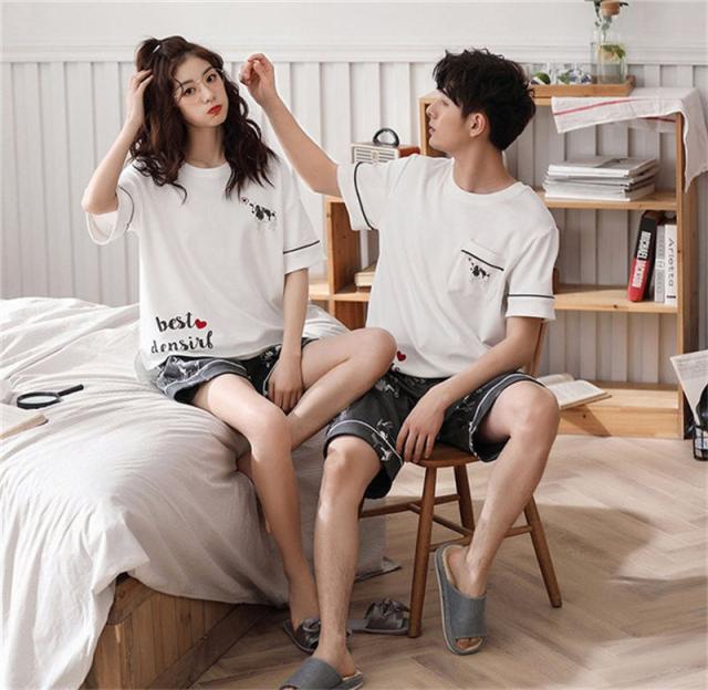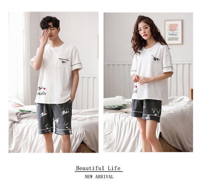 ペアパジャマ カップル ペア ルームウェア 夏 韓国風 ペアルック パジャマ セットアップ 綿 寝巻き 部屋着 お揃い 寝間着 ギフト おしゃれ 結婚記念日