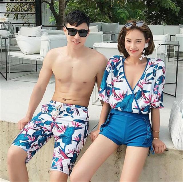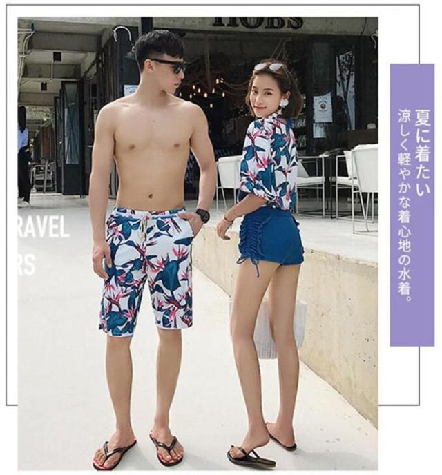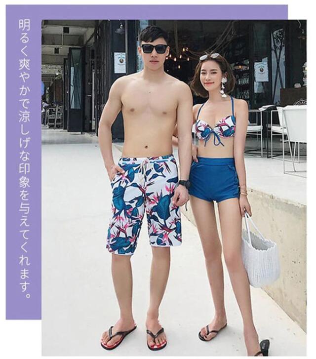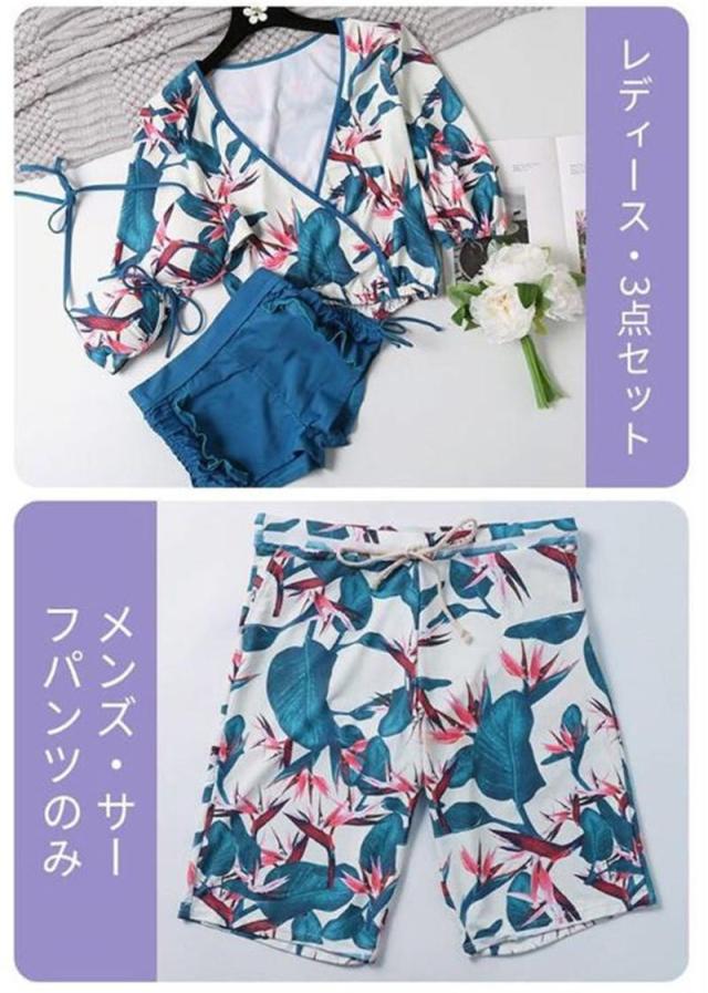水着 ペア水着 レディース メンズ カップル ミズギ 体型カバー ペアルック ビキニ ガウン ホルターネック ビーチウェア タンキニ ワイヤーブラ お揃い 花柄 海外旅行