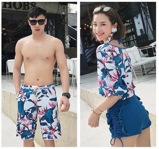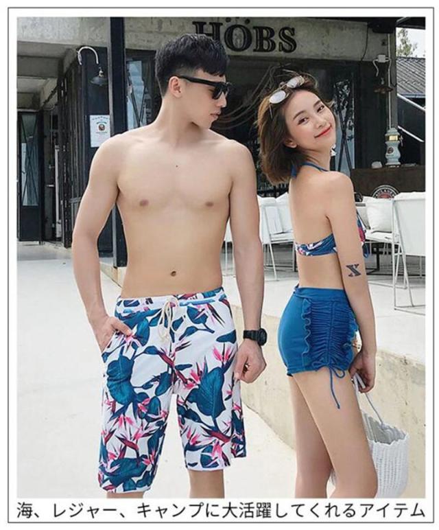 カップルお揃い ビーチ水着 体型カバー水着カップル ペア 水着 メンズ ペアルック ビキニ 体型カバー水着 ガウン ホルターネック 旅行 温泉 夏 水着