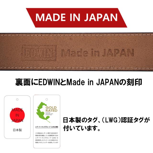 エドウィン EDWIN ベルト フェザー 手塗り 牛革 本革 レザー ロゴ メンズ レディース カジュアル プレゼント ギフト 日本製 正規販売店 22269290 0111172