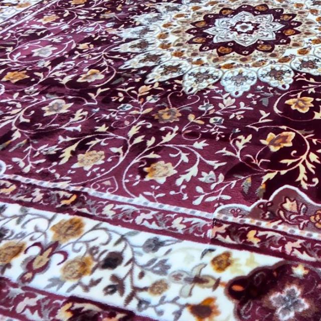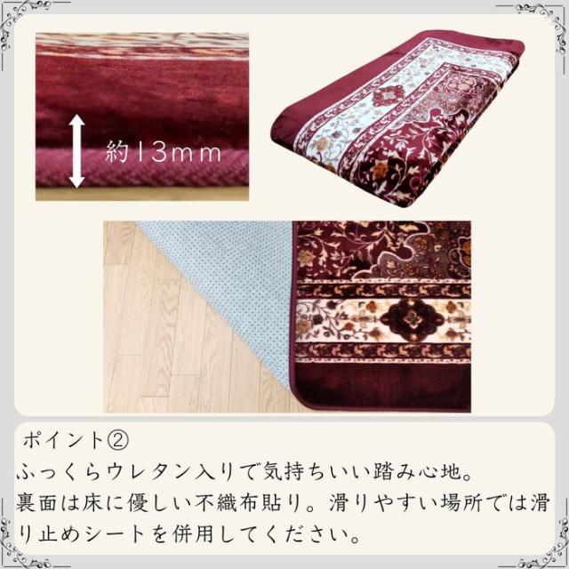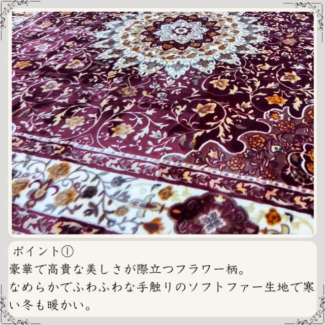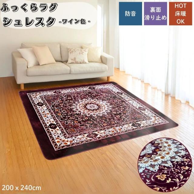 ふっくらラグ シュレスタ 200x240cm 3畳用 ワイン色 あったか高密度マイヤー織 北欧王朝柄 ホットカーペットカバー こたつ敷