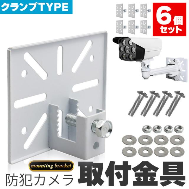 防犯カメラ 取付金具 ブラケット 6個セット クランプ スタンド ハウジング 穴開け不要 挟み込み 監視カメラ ダミーカメラ ソーラーライト 屋内 屋外 設置 鋼鉄 すぐ使える ホワイト カメラ取付ネジ付き ベランダ 扉 板 鉄骨 架台