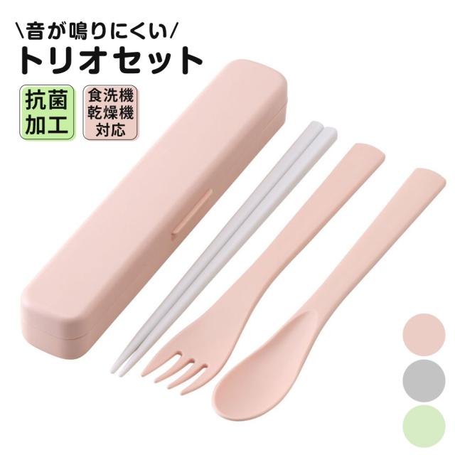 \今だけ10%OFF/ 箸 スプーン フォーク セット 抗菌 音が鳴りにくい 18cm 食洗機対応 日本製 カトラリー 大人 女性 学生 女子 お弁当 ランチ グッズ おはし 匙 シンプル 無地 くすみカラー ピンク グレー グリーン トリオセット TAC1AG