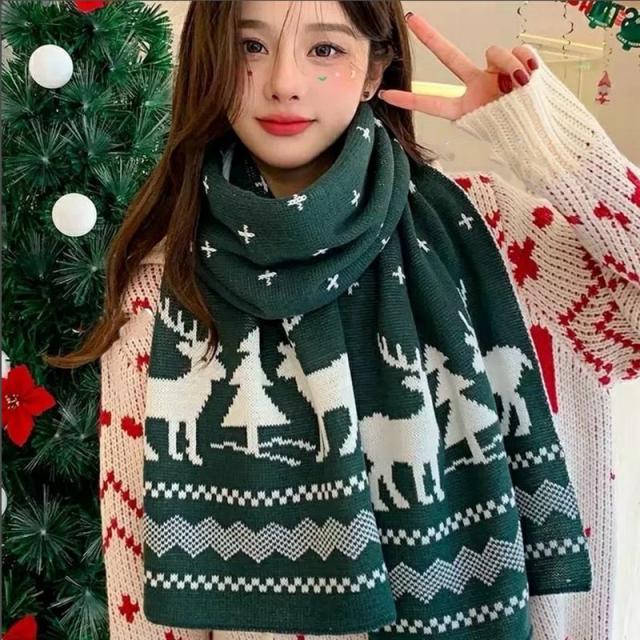 ◎クリスマスシーズンにぴったりのマフラーが登場!可愛らしい鹿のデザインが特徴で、冬のコーディネートに暖かさとおしゃれさをプラスします♪
